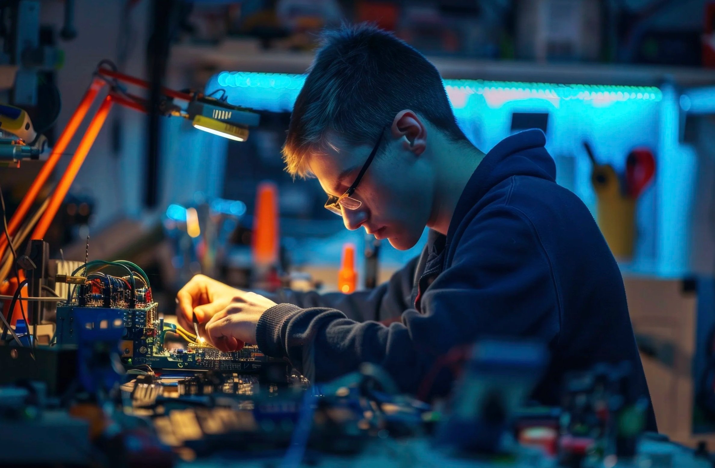 We also work closely with our Mechatronics Technology (MechTech) Laboratory across the hall in 273 Engineering Terrace. This lab focuses on electromechanical systems and houses courses such as Robotics Studio and Mechatronics. Please visit the MechTech website for more information about this space.